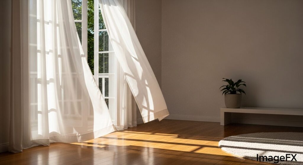 朝起きる ⇒ カーテンを開ける ⇒ お日様の光を浴びる ⇒ 深呼吸する